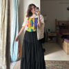 Available in classic shades like black, white, yellow, brown, sky blue, and green, this skirt allows endless styling options. The simple yet graceful design makes it a wardrobe essential you’ll love wearing again and again. It’s also available in 6 sizes from XS to 2XL, ensuring a fit for every body.